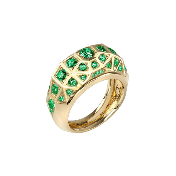 Yellow Gold Emeralds Duomo Ring Full Pave