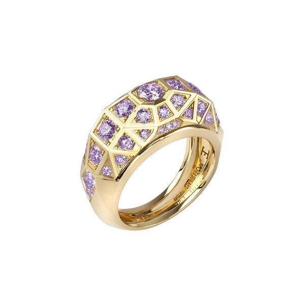 Yellow Gold Lavanda Sapphires Duomo Ring Full Pave